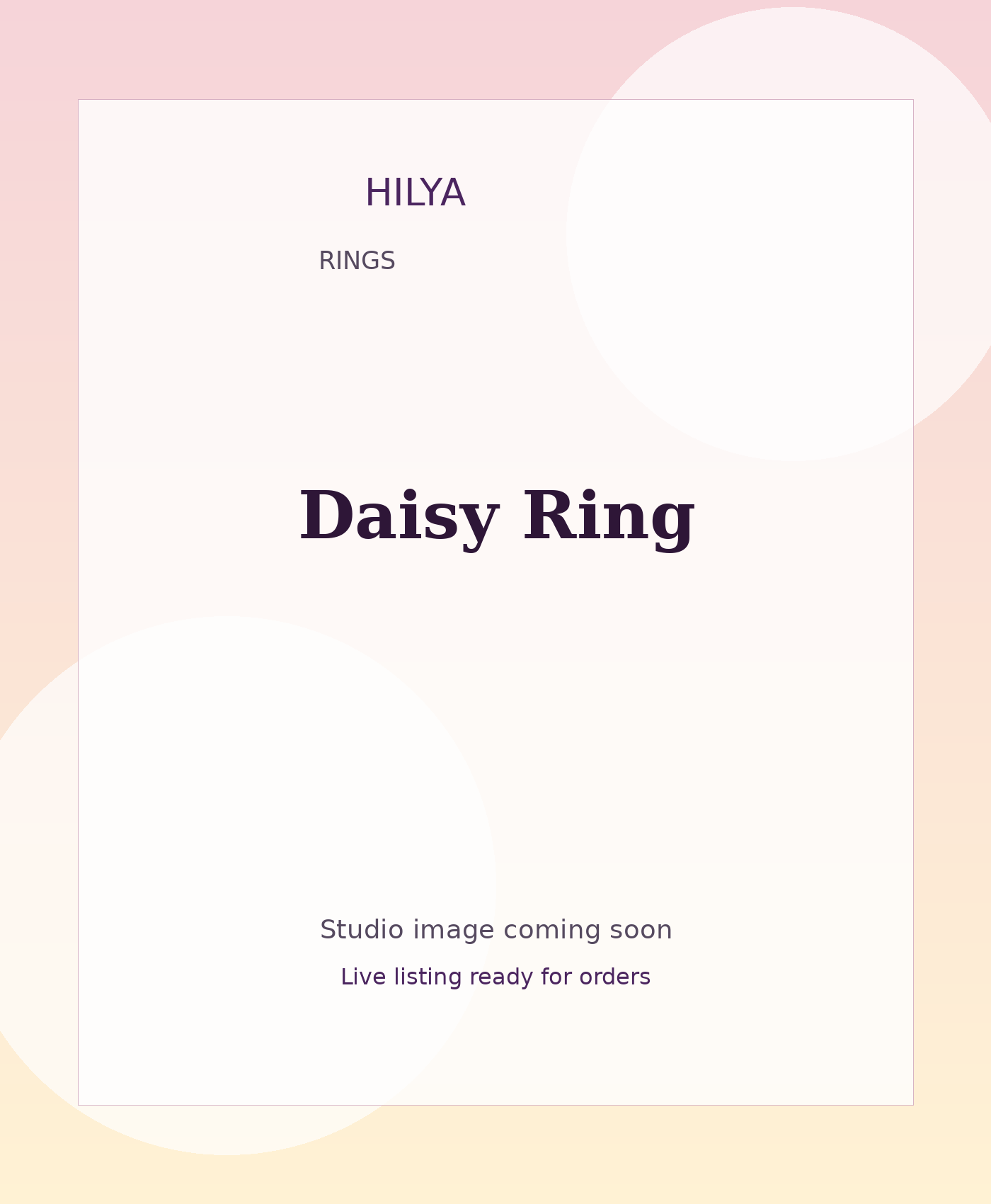 Handcrafted resin rings finished in Hilya’s signature romantic palette.