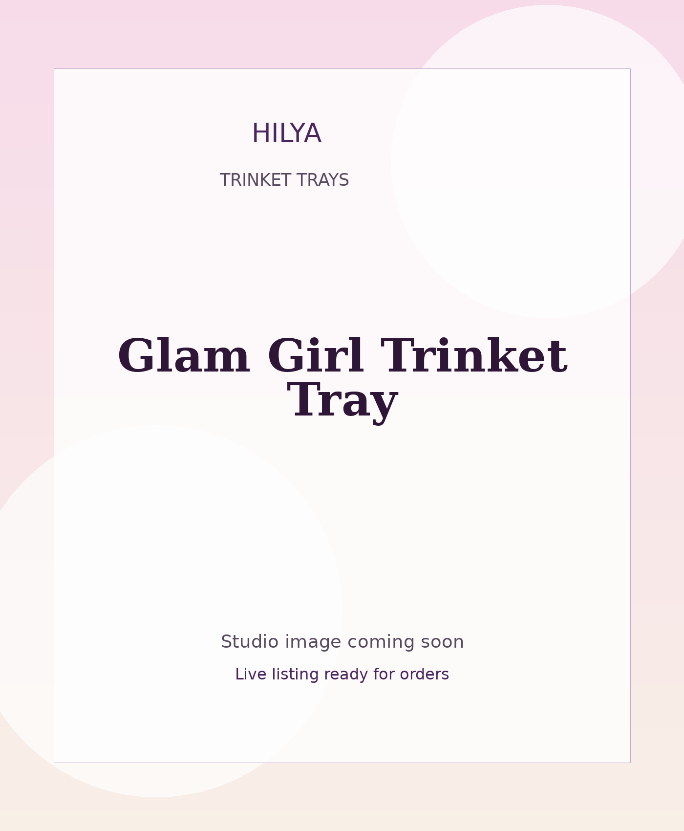 Glam Girl Trinket Tray is a handcrafted resin trinket trays from Hilya. This listing currently uses placeholder imagery so the storefront stays complete while final studio photos are being prepared. The named piece, price, and ordering flow are live now, and product images can be swapped later without affecting the listing.