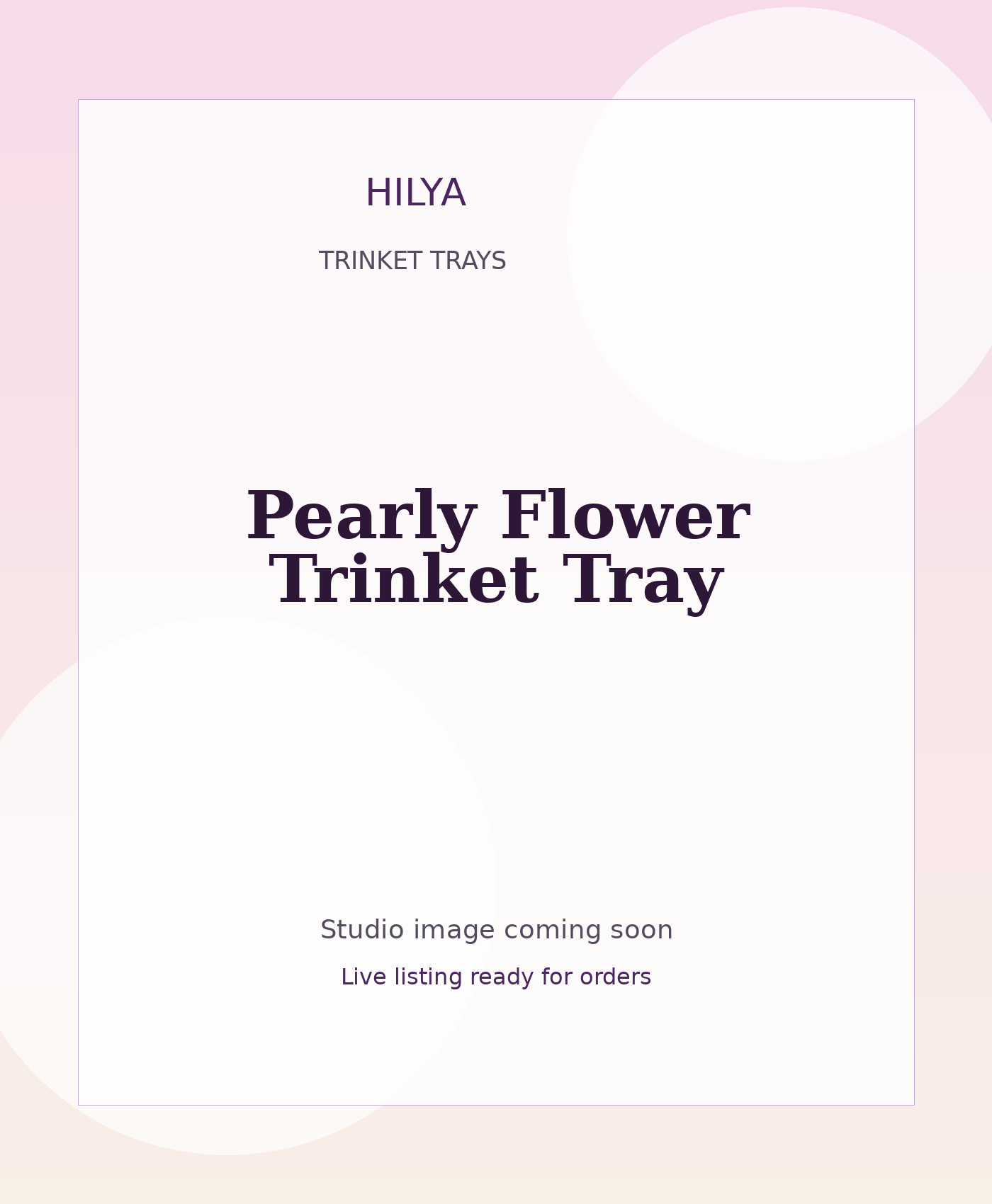 Pearly Flower Trinket Tray is a handcrafted resin trinket trays from Hilya. This listing currently uses placeholder imagery so the storefront stays complete while final studio photos are being prepared. The named piece, price, and ordering flow are live now, and product images can be swapped later without affecting the listing.